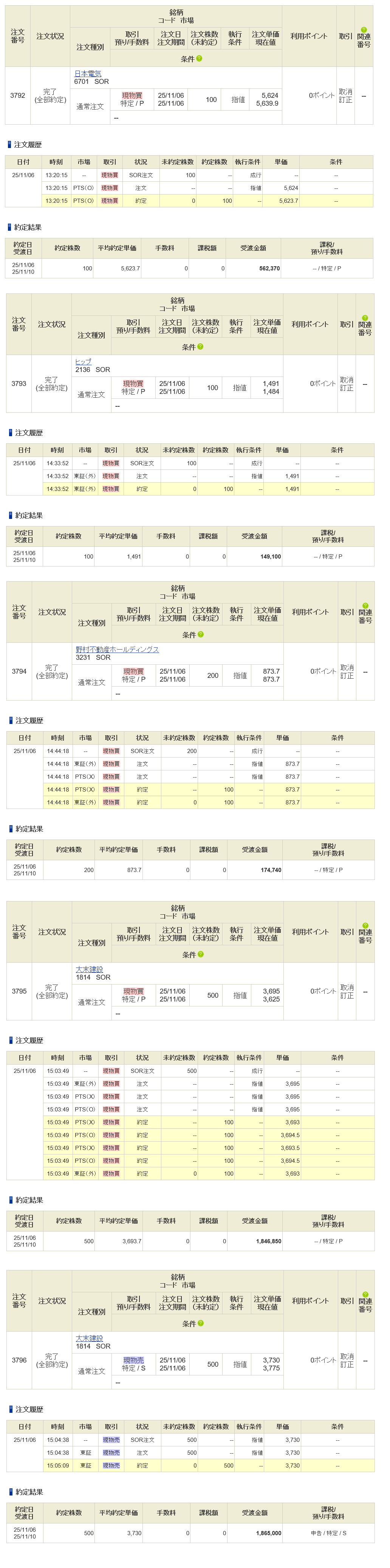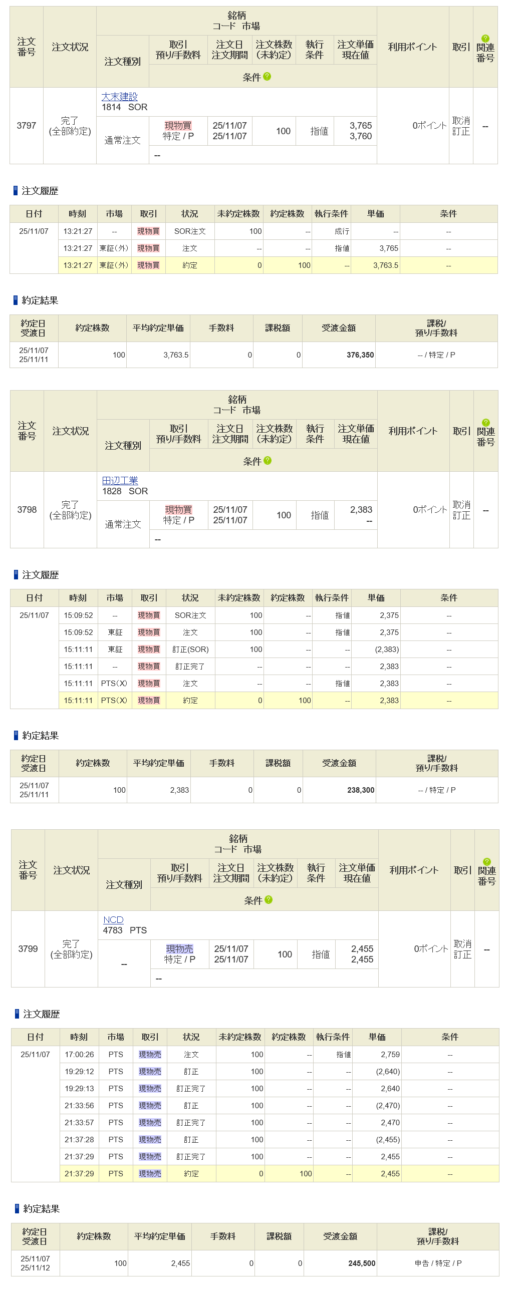 日本株の大末建設、田辺工業を購入して、NCDを利確売却して、