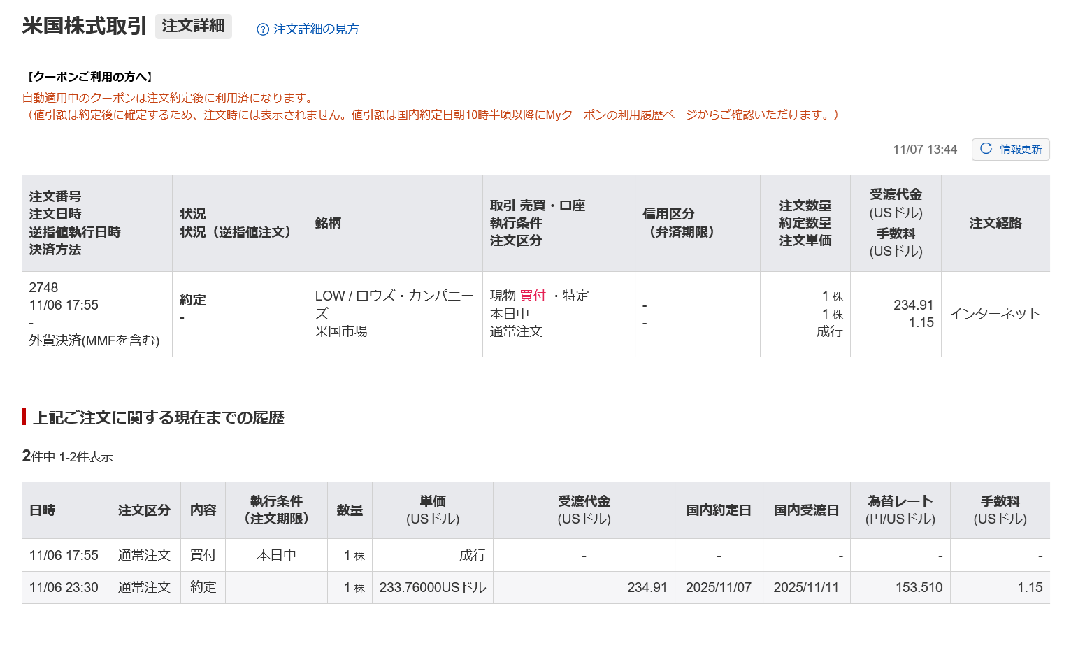 大末建設をデイトレードして、アメリカ株のLOWを配当再投資して、
