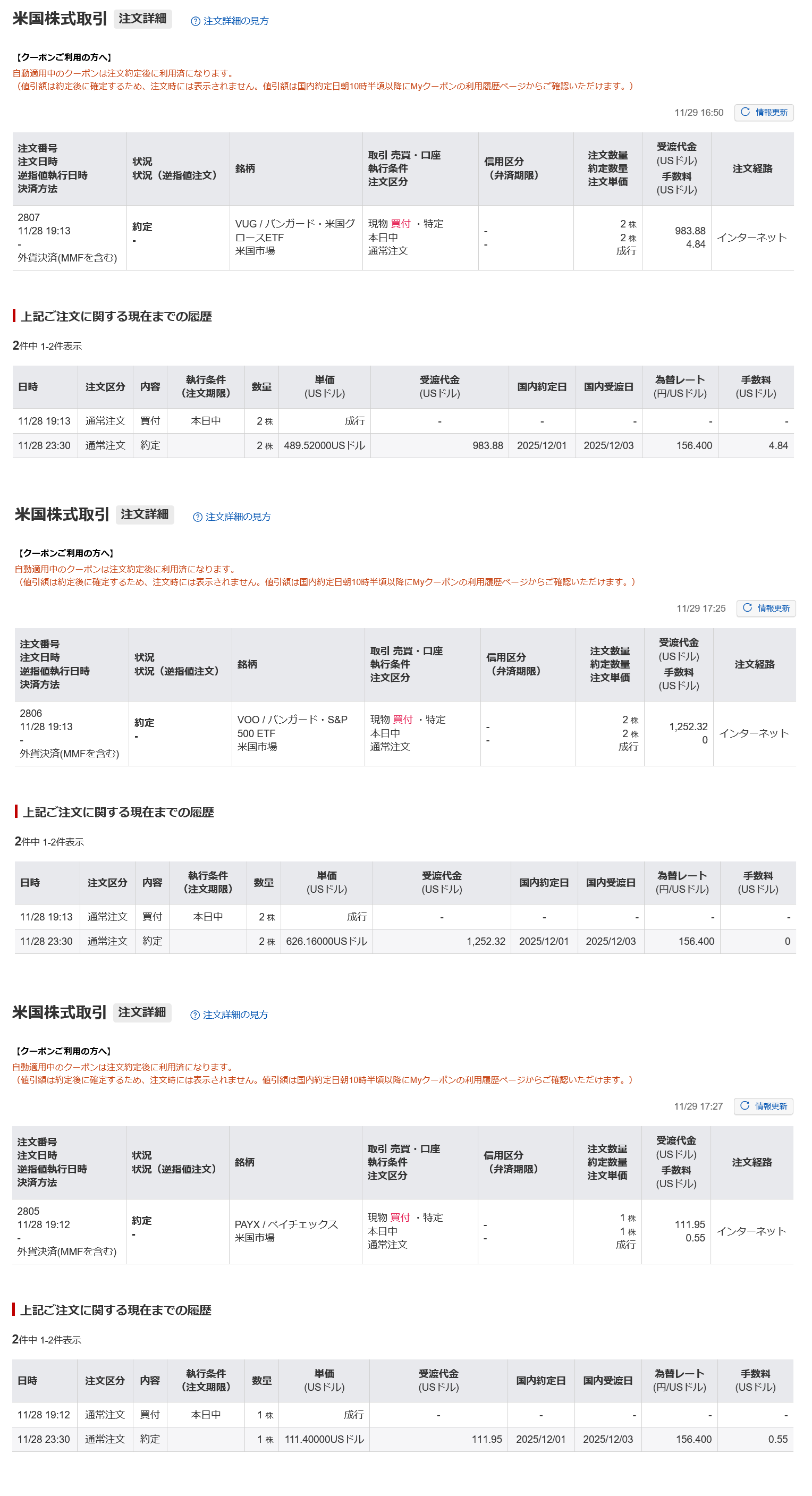 アメリカ株のETFであるVUG、VOOを2株ずつ購入して、