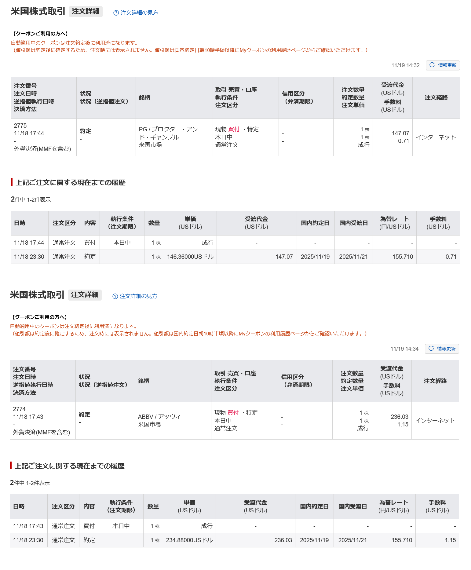 アメリカ株のPG、ABBVを配当再投資をして、